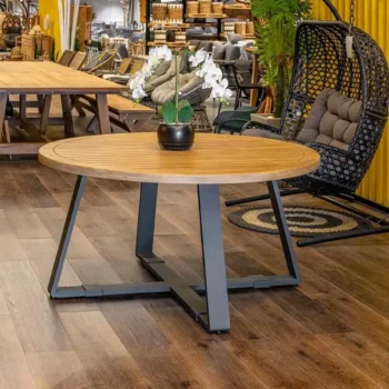שולחן מעוצב מעץ מלא בשילוב רגלי אלומיניום “אל חלד”.