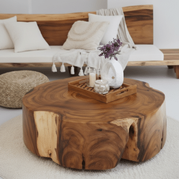 הוסיפו נגיעה של טבע פראי ויוקרה חמימה למרכז הסלון שלכם. שולחן הקפה הייחודי הזה עשוי מחתיכה אחת של עץ סוואר איכותי, המפורסם בזכות הטקסטורות העשירות והמבנה החזק שלו.