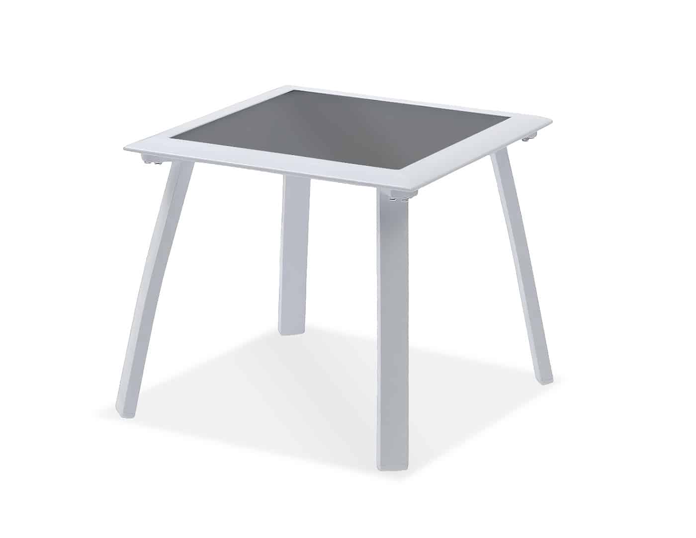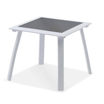 שולחן צד מאלומיניום, זכוכית מחוסמת.