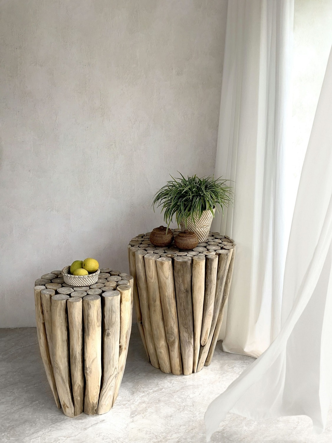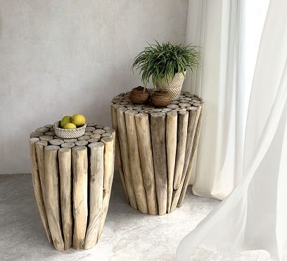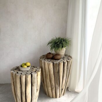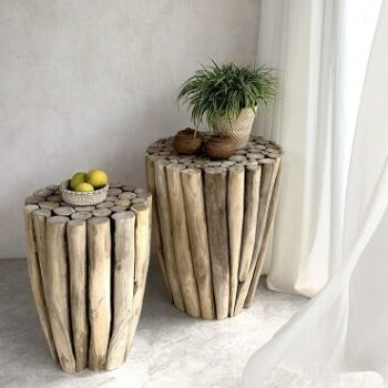 השולחן בנוי מענפי עץ טיק, תוצרת אינדונזיה.