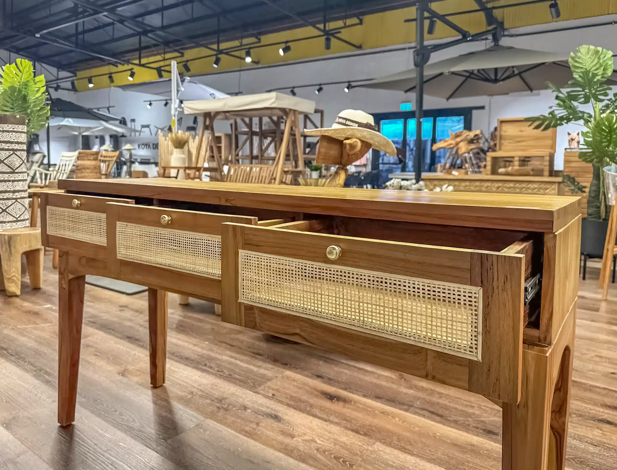 המגירות משולבות ראטן טבעי המעניק מראה חדשני ומודרני.
