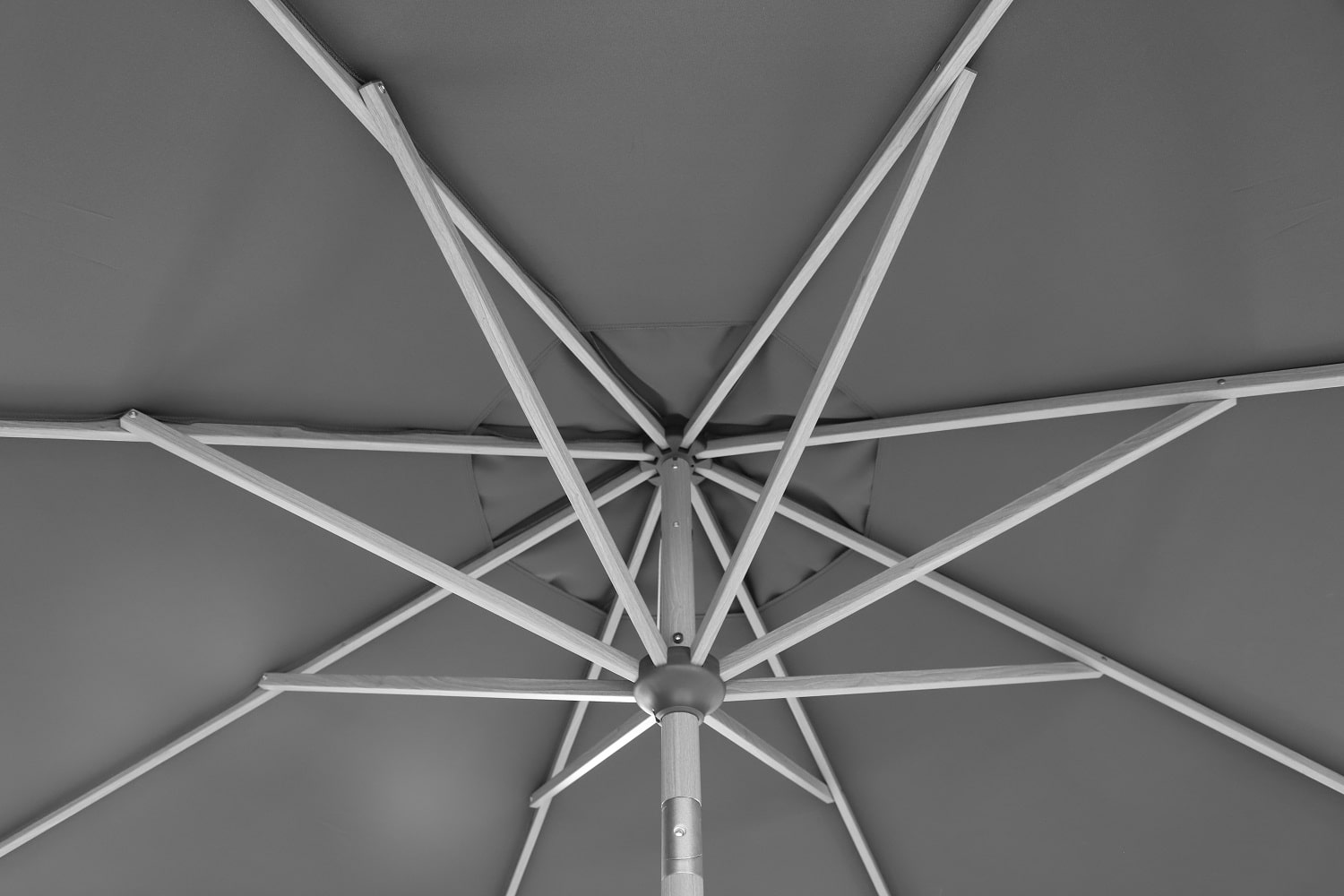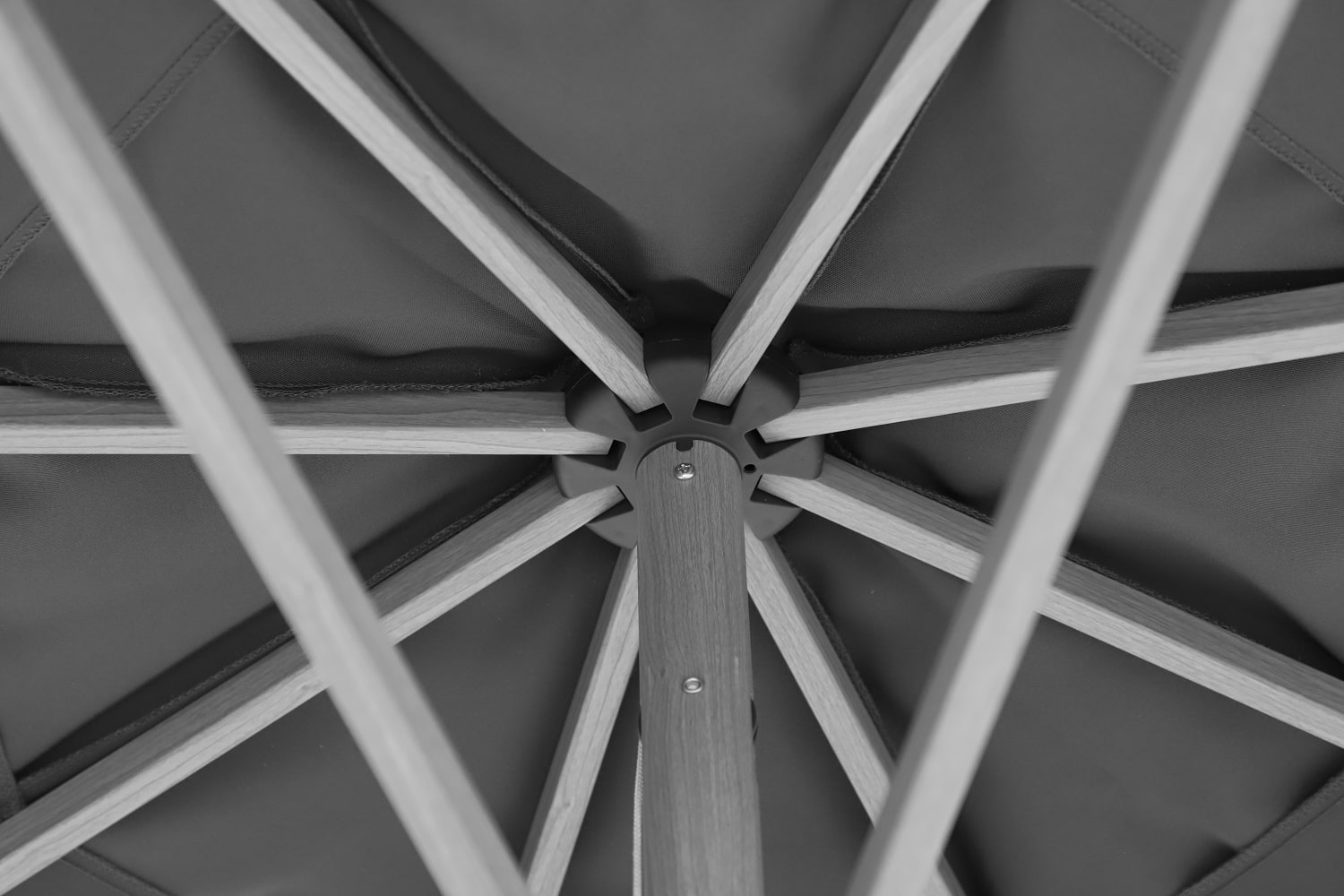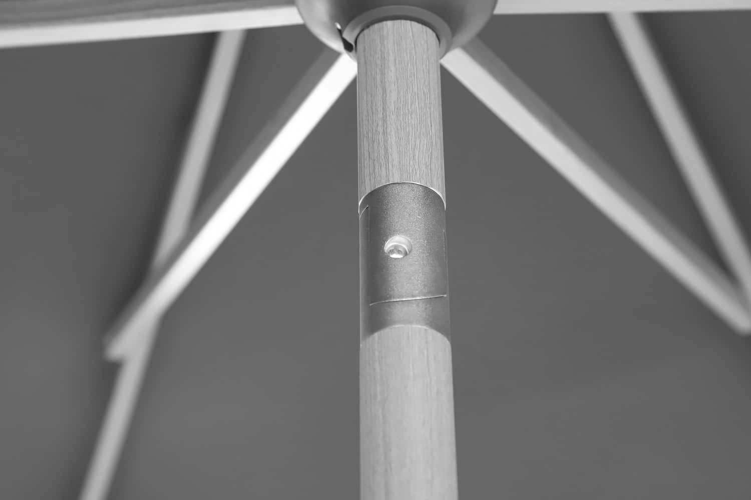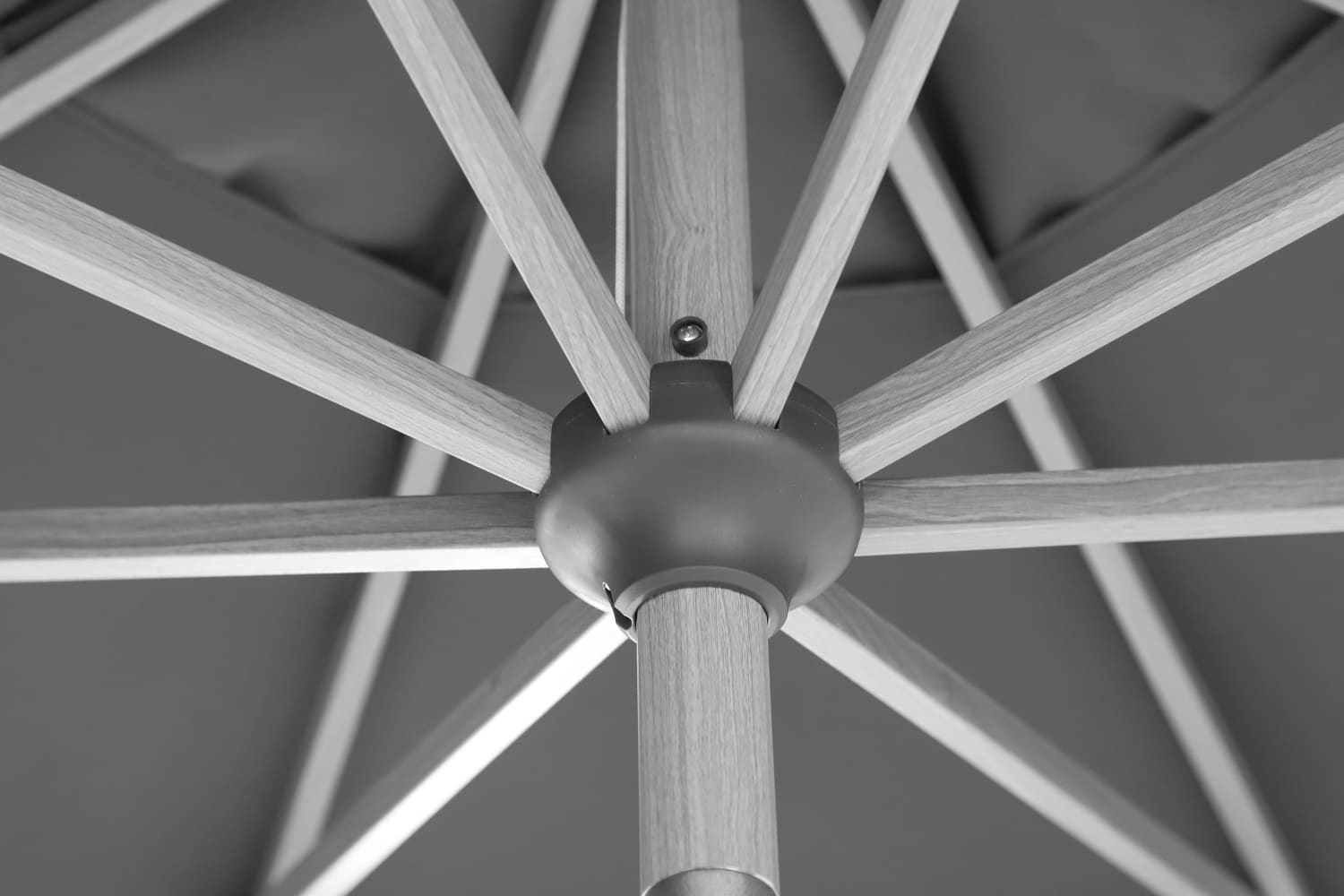 עמוד אלומיניום בשילוב 8 צלעות אלומיניום חזקות במיוחד אשר מוסיפות עמידות לשמשייה.