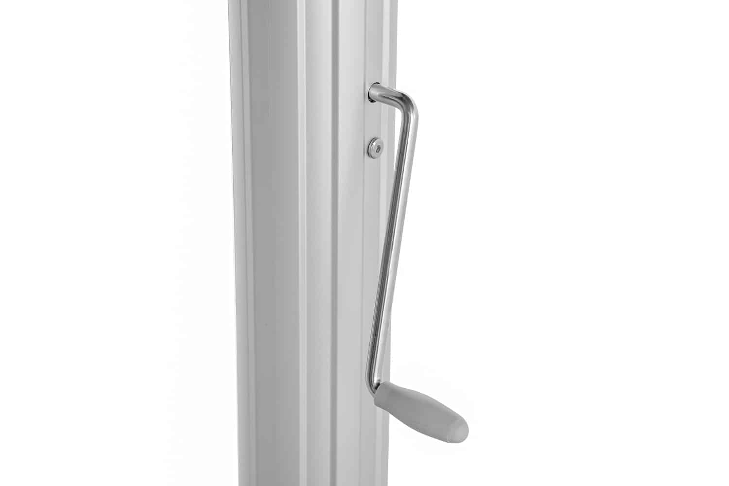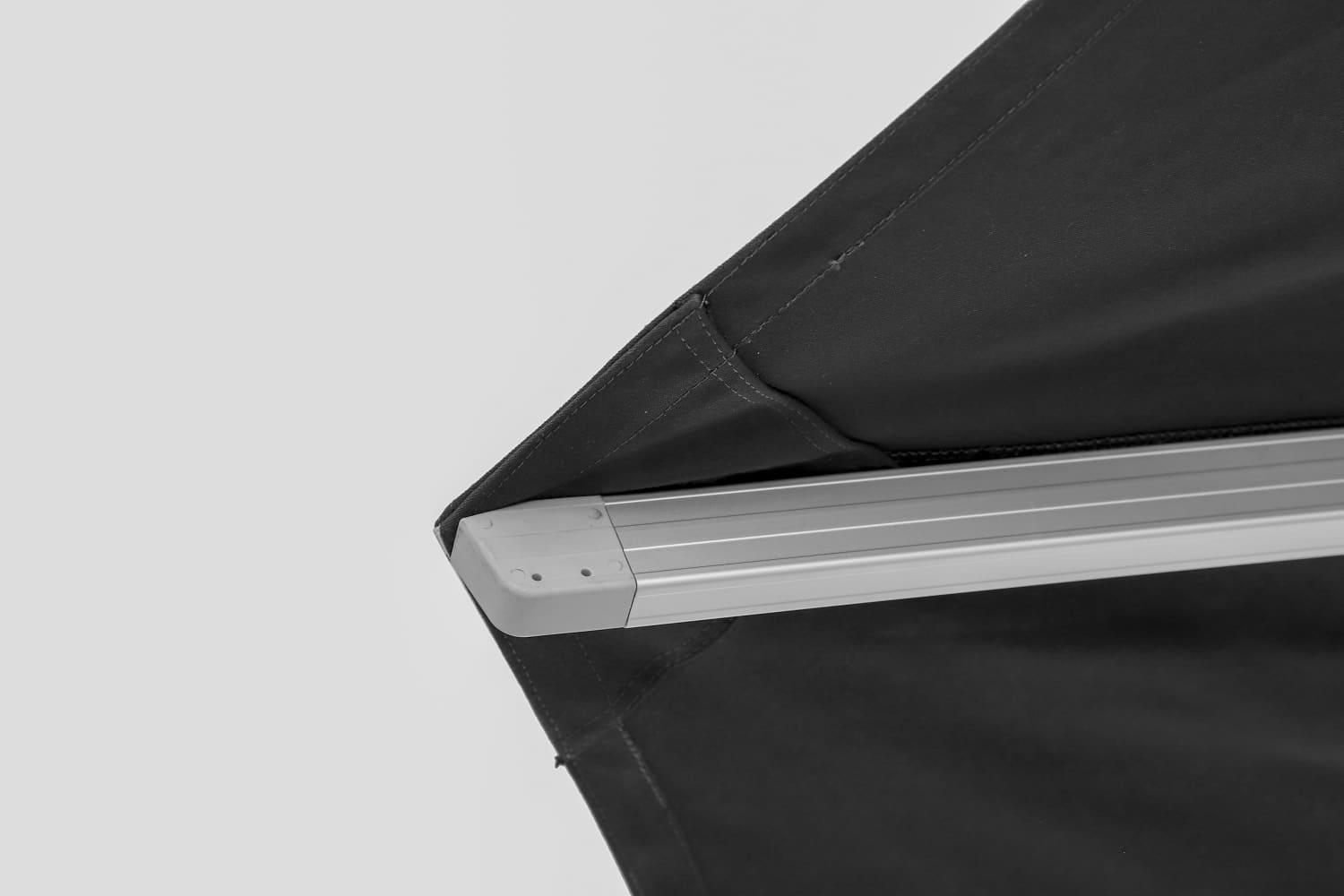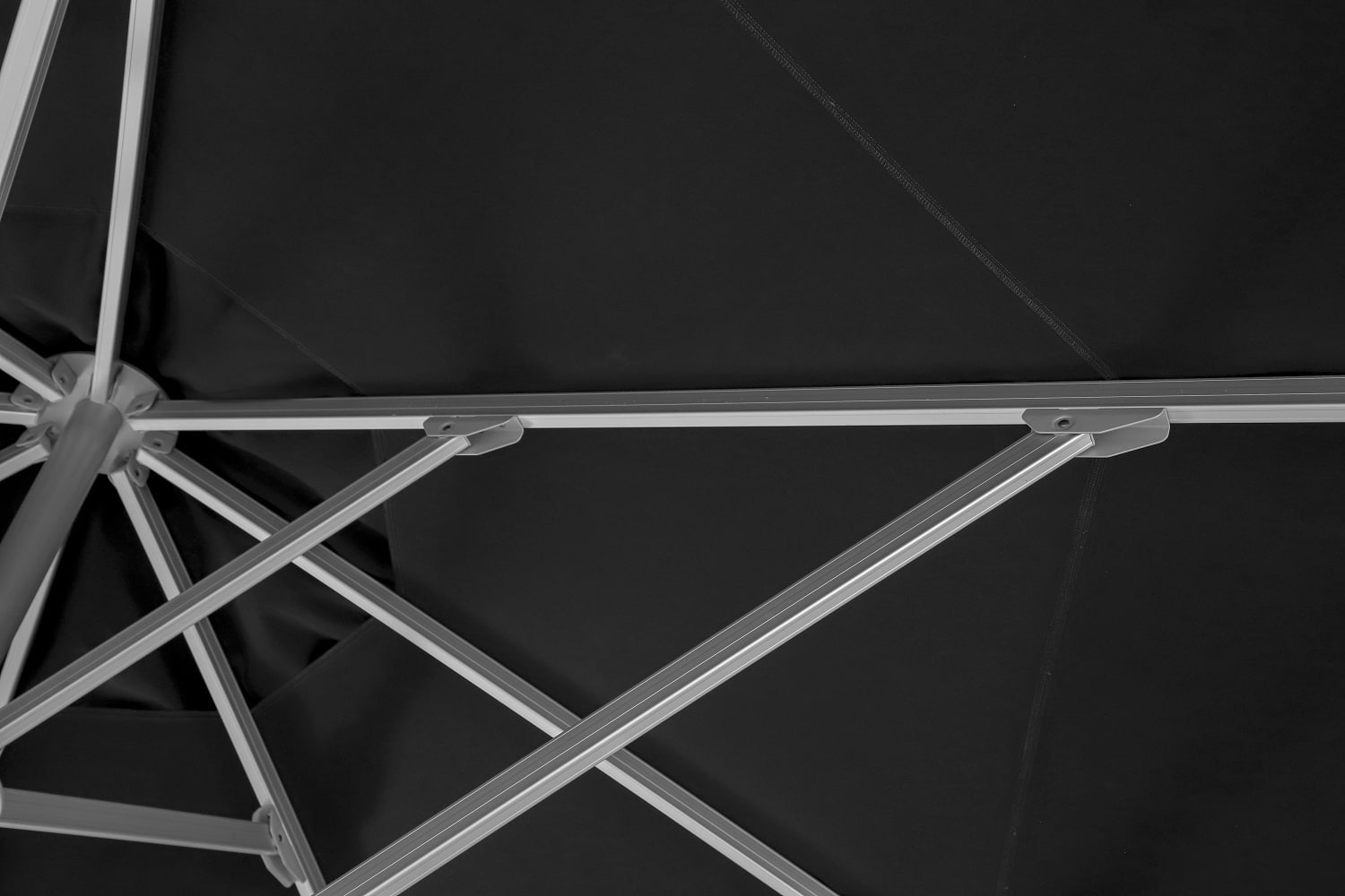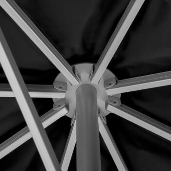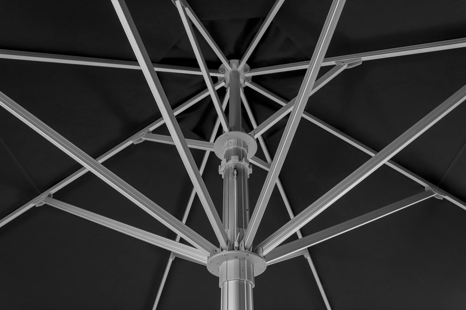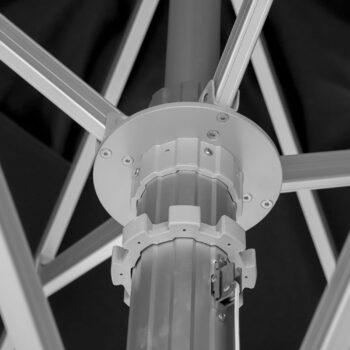 עמוד אלומיניום עבה במיוחד (100 מ”מ קוטר!) בשילוב 8 צלעות (דו שכבתיות) אלומיניום חזקות במיוחד אשר מוסיפות עמידות לשמשייה.