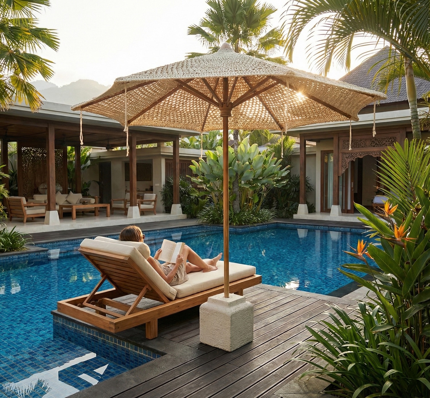 שמשיית מקרמה מעוצבת תוצרת אינדונזיה בשילוב בסיס יוקרתי.
