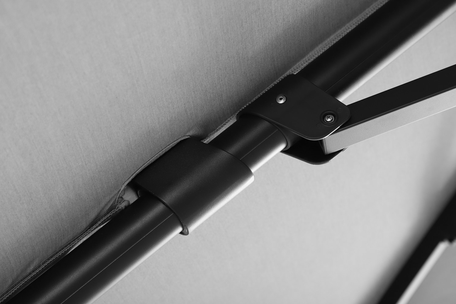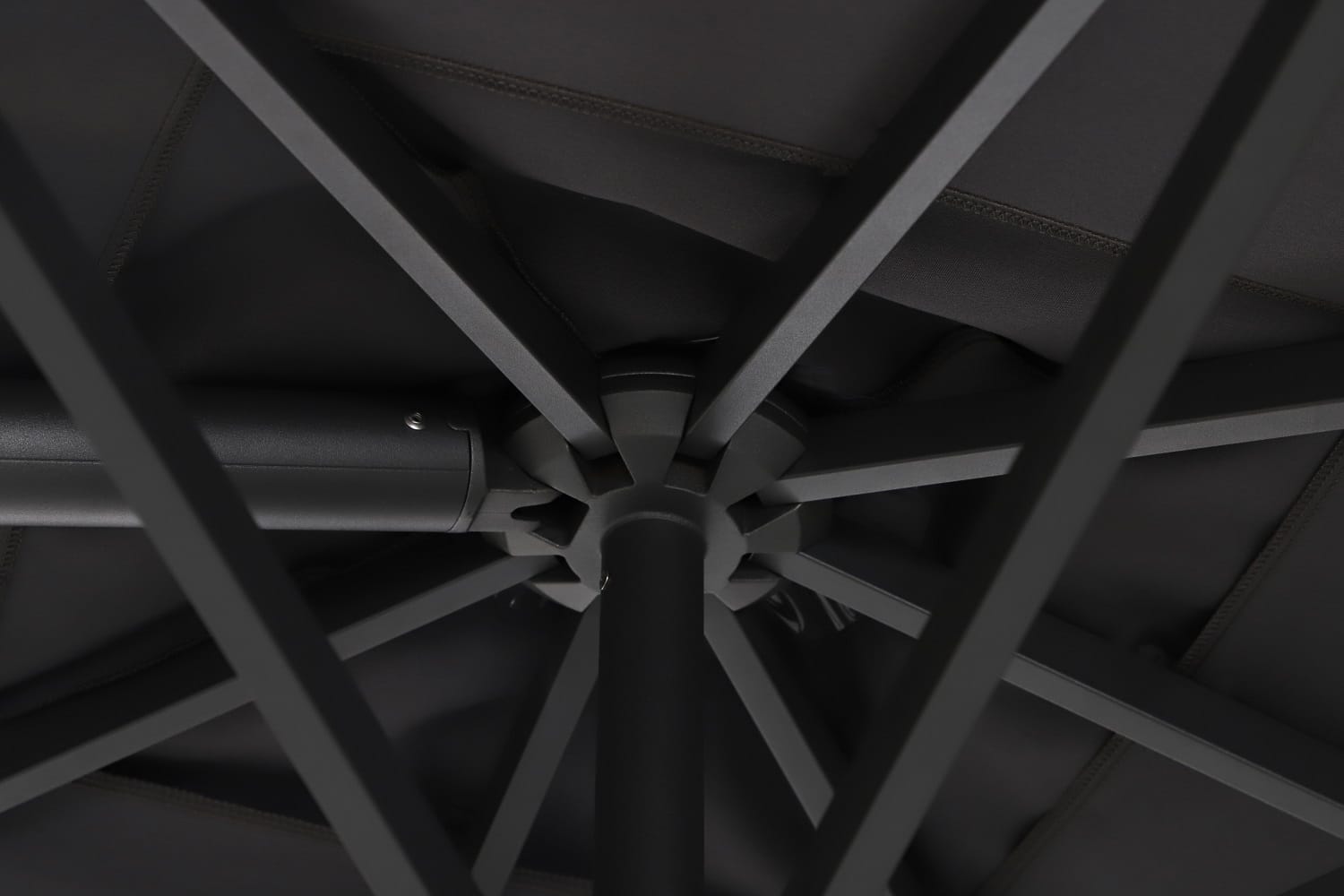 עמוד אלומיניום עבה בשילוב 8 צלעות אלומיניום חזקות במיוחד אשר מוסיפות עמידות לשמשייה.