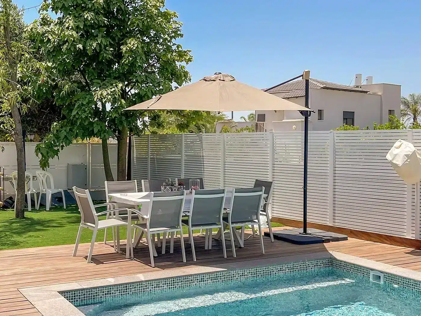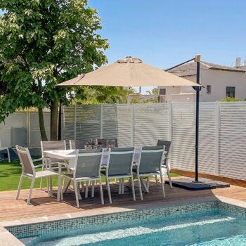 יש לקבע את מגוון פתרונות ההצללה, כולל גזיבו ושמשיות. אחריות יצרן בלבד.