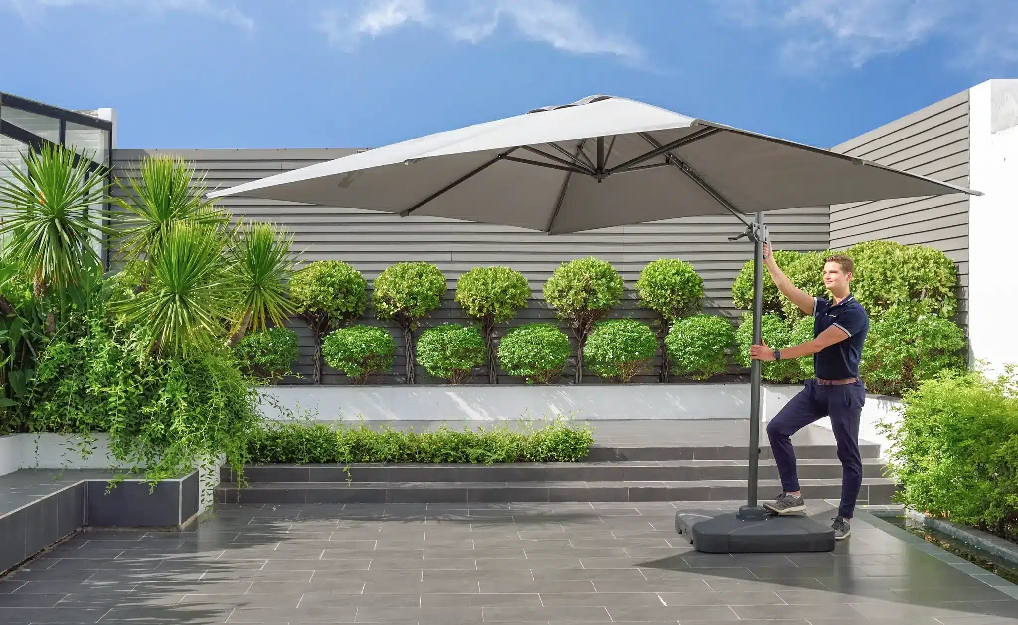 עם מבנה ריבועי בגודל 3×3 מטרים ותנועה סיבובית של 360°, השמשייה הזו מכסה כל פינה – בדיוק מה שצריך כשיש הרבה שטח והרבה אורחים.