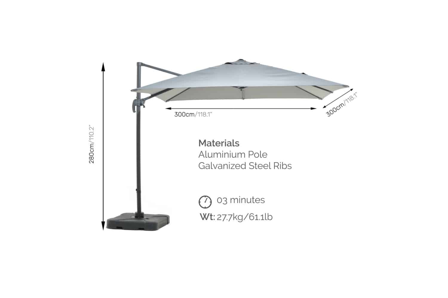 שמשיית צד 3 מטר כולל בסיס דגם סומברלה