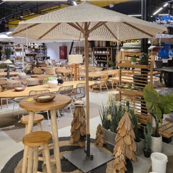 שמשייה בקוטר 250 ס”מ אשר עשויה מעץ טיק מלא, המחיר כולל בסיס שמשייה מעוצב תוצרת אינדונזיה.
