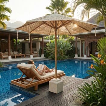שמשיית מקרמה מעוצבת תוצרת אינדונזיה בשילוב בסיס יוקרתי.