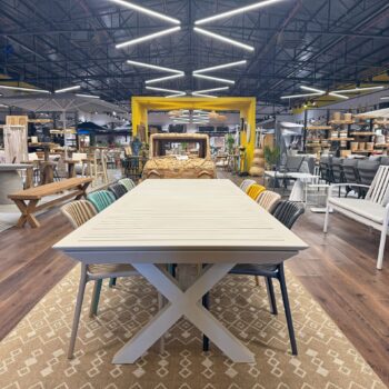שולחן אלומיניום דגם דלהי 400 + 8 כיסאות מדגם דיווה במבחר צבעים לבחירה.